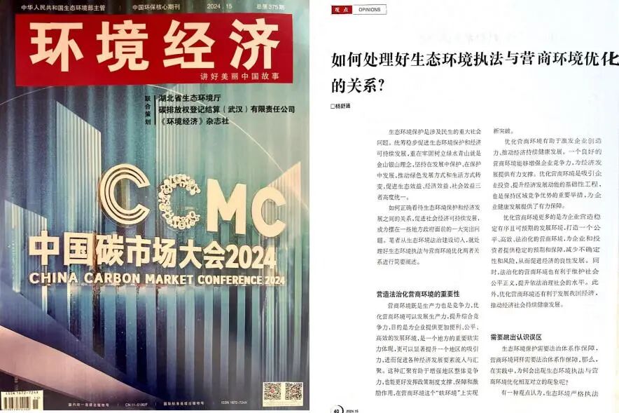 2022级法学一班杨舒涵在刘盈君老师指导下《环境经济》(国内统一刊号CN11-5190/F、国际标准刊号ISSN1672-724X)发表论文。