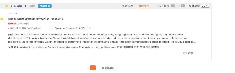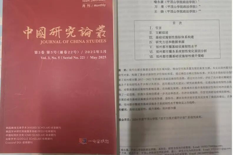 2022级法学一班喻永康在万果老师指导下,于《中国研究论丛》(JournalofChinaStudies)发表论文。